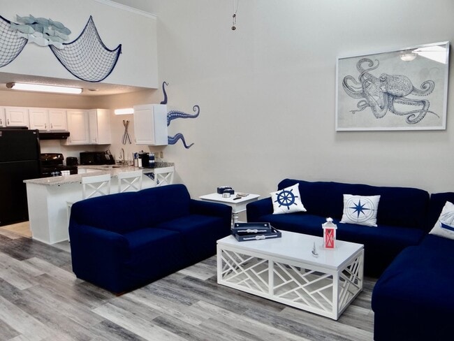 Your home away from home in paradise is "The Kraken". This stylishly remodeled, large 3rd floor 2 bed/2 bath 1200 square foot loft style condo gives you everything a great getaway should be. In Surfside Beach's Golf Colony, a short golf cart ride to the beach (1.5 miles away) and overlooking a fabulous pool deck equipped with a smoker, grill and picnic area to entertain the whole family, you won't run out of good times in the sun. Get tired of lounging in the sun? Grab your mates and crush a game of pickleball or tennis! One of the best kept secrets in all of Surfside! Digital nomad ready!