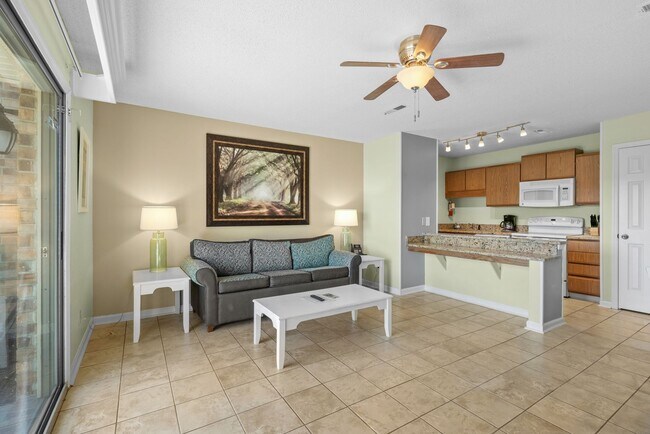Ground floor! Immerse yourself in this stylish two bedroom condo just 1.5 miles from the stunning Surfside Beaches. Located in Grand Palms at Deerfield and positioned so you can enjoy easy access to the beach and local shopping. ***Note Grand Palms timeshare amenities are not available to our guests*** Relax and enjoy family time in this spacious and comfortable ground floor condo located just 1.5 miles to the closest beach access in Surfside Beach. Experience the laid back, family friendly atmosphere of Surfside Beach while taking advantage of all the nearby restaurants and beach activities! Enjoy the fully stocked eat-in kitchen and comfortable living room making it the perfect place to stay while experiencing all the South Strand has to offer. The primary bedroom features a king sized bed, 40" flat screen tv w/premium cable, en suite bathroom and walk-in closet. The second bedroom has two comfortable double beds with a separate shower room and vanity/toilet room so 2 family members can get ready at the same time.