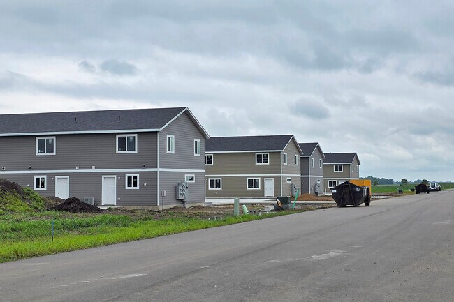 Welcome to Medary Creek Townhomes, a brand-new townhome community located in Aurora, South Dakota, just 10 minutes from Brookings. Enjoy small-town living with convenient access to city amenities. These townhomes feature private access, 2 bedrooms, 1 ½ bathrooms and parking spaces directly in front of each unit. Additional amenities include central air, an 8x8 concrete patio off the back, and parking spaces directly in front of each unit. The main level offers an open-concept floor plan, seamlessly connecting the spacious living area to the kitchen. Hardwood floors run throughout the main level, complementing the beautiful stainless-steel appliances, including a dishwasher, electric flat-top range, microwave, and refrigerator with water and ice in the door. The kitchen also boasts a very spacious pantry, a large island with seating, and cabinetry with soft-closing mechanisms and stainless-steel hardware. For your convenience, a half bathroom is located off the living area. Upstairs, you will find 2 bedrooms, a full bathroom, and a laundry area. The hardwood flooring extends from the main level into the bathroom, while the bedrooms feature luxurious carpeting and large closets, including a second walk-in closet in the master bedroom. Lawn care, snow removal, and curbside garbage collection are all provided. Pets are welcome with a deposit and pet rent. Don’t miss out on this beautiful new home—call, text, or email today for more details and to submit your rental application(s) to schedule a showing!