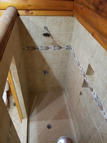This custom log interior home is fully renovated with recessed lighting, tiled double walk-in shower, and high-end materials for comfortable living. Vaulted ceilings, Stainless Appliances.