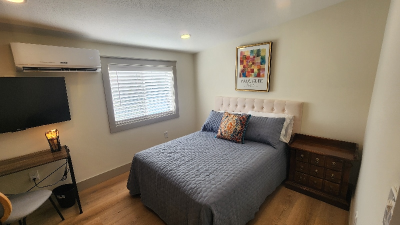 Property Id: 2148863 Little Pigeon is a full bed bedroom (linens inc) with private workspace w desk, chair & lamp, 43" Roku Smart TV w Voice Remote, nightstand and ample closet in fully remodeled 2600 sf Knoxville home specifically designed for travel medical & contract professionals. Located in South Knoxville just 4 minutes from UT Medical Center, 10 minutes from Ft. Sanders & East TN Children's Hospital, this room includes great back-yard view, shares large addition tiled bathroom with Little River: tiled shower, vanity & storage. Sound-insulated walls, Schlage secure electronic keypad lock, Mini Split HVAC w remote control for total comfort, 2 sets bath linens included. Near downstairs laundry & deck. High speed (500 mbps +) & utilities included. Full access to shared indoor & outdoor living areas; 2 fully furnished kitchens, Living room, Den (w 55" Roku smart TV w Voice Remote & gas fireplace), 2 laundry rooms, large 2 level deck and backyard, large covered Front Porch). The home is designed for independent, mid-term guests. You will have privacy and can come and go as you wish. We are available by message or phone if anything comes up, but we keep interaction minimal unless a guest needs assistance. Other residents are working professionals who also value a quiet, respectful environment. This home is shared with a small number of mature, professional residents, many of whom work in medical or corporate roles. It’s a quiet environment suited for guests who value privacy and respect for others. One guest per bedroom. Pets are considered on a limited, case-by-case basis with prior approval, and we allow a maximum of three pet-owning guests in the home at any time. Not suitable for children, infants, or group stays. Property Overview: Video Virtual Tour -