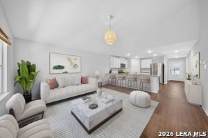 Step into a beautifully designed home where modern comfort meets timeless style. The journey begins on an inviting covered front porch, leading to an elegant dining room that sets a sophisticated tone for memorable gatherings. The heart of the home is an open-concept living area, where a large kitchen with a breakfast bar flows effortlessly into a cozy family room. From here, step out to the covered patio, a perfect extension of your living space for seamless indoor-outdoor entertaining. Relax and recharge in the luxurious primary suite, a private retreat complete with a spa-like ensuite featuring dual vanities and a separate garden tub and shower. Abundant storage is provided by the large walk-in closet, and secondary bedrooms on the second level also include walk-in closets. The second floor boasts a massive flex space, ideal for a game night, home theater, or a private second living area. This home isn't just a property; it's a lifestyle. The community offers resort-like amenities, such as a swimming pool, park, and clubhouse. With premier shopping, dining, and entertainment, including Sea World, only minutes away, you'll have everything you need right at your fingertips.