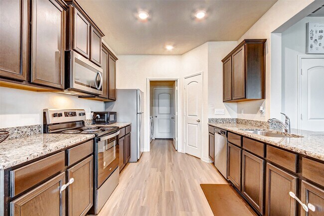 Welcome to 1215 Hollow Stone Dr,a beautifully maintained home in the gated master-planned community of Sterling Lakes by Land Tejas! This spacious residence offers an open-concept layout filled with natural light,featuring a modern kitchen with granite countertops,stainless steel appliances,and a breakfast bar overlooking the family room. The primary suite includes a spa-like bath with a soaking tub,separate shower,and large walk-in closet. Enjoy the private backyard perfect for relaxing or entertaining. Community amenities include a resort-style pool,splash pad,tennis courts,clubhouse,fitness center,and scenic lakes with walking trails. Conveniently located near Highway 288,providing easy access to Pearland Town Center,Texas Medical Center,Downtown Houston,and upcoming attractions like the Manvel Town Center and Iowa Colony’s new parks and dining options. Zoned to Alvin ISD and move-in ready! MLS# 89993305