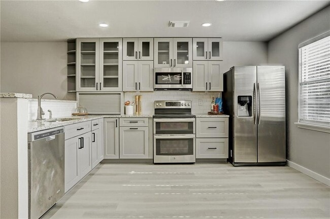 Just 10 minutes from downtown Austin, offers easy access to HEB and River Park. Community amenities include a pool, sand volleyball court, picnic area, and walking trails. Inside, enjoy modern features like quartz countertops, stainless steel appliances, and a wood-burning fireplace in the living area. Downstairs, you'll find a convenient additional half bath and a charming patio, while upstairs features two bedrooms, each with its own bathroom and balcony for added comfort and privacy. The HOA installed a new balcony last year. For lease application instructions, please go to: bit.ly/ggtxleaseapp