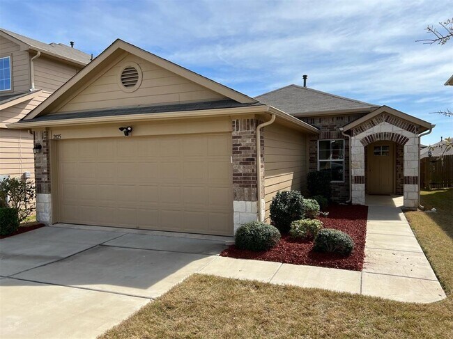 ONE WEEKS FREE RENT FOR QUALIFIED APPLICANTS! HURRY THIS WILL NOT LAST! Lowest rental price in subdivision available 4/1/23. Darling one story home with doggy door for lease in Pioneer Hill subdivision! Open concept, has high 9' ceilings, large tile flooring in common areas and carpet in 3 bedrooms. Living Room has homey air to it with ceiling fan and light. TV wall mount awaits your flat screen! Kitchen has shaker cabinets with pulls, stainless steel appliances, gas range, granite countertops, grey subway tile backsplash with double stainless sink. Back door has a doggy door for your pets!!! Primary bedroom spacious, includes blinds and drapes and over looks back yard, with fan and light. Spacious ensuite with large walk in shower and closet. The two secondary bedrooms are very comfortable, carpeted with windows and blinds. Laundry room conveniently located on main floor. Garage spacious with a wide driveway. Entire yard has automated sprinklered to save you having to water the lawn. Ring doorbell can be assigned. The amenities in this subdivision include a playground, basketball court, pool, club house and various grilling locations throughout the subdivision. Walnut Creek Park at edge of subdivision with trails, trees and creek. Lots of shopping nearby. This is a must see.