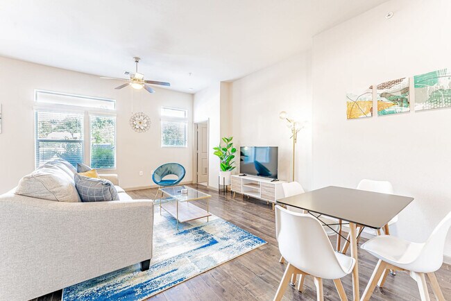 The advertised rate of $2,955/month is the lowest available price, based on a 1 month(s) stay with a move-in date of April 14, 2026. Rates vary depending on the duration of stay, season, and other parameters. For exact pricing and additional pricing components, please visit our website and enter your desired move-in and move-out dates. The rate is applicable when billed upfront; it can be higher if billed in multiple payments. Feel at home in this 1,290 sqft 2-bedroom apartment in Riverside, a trendy community next to Downtown Austin. Located on the 1st floor, this apartment offers a modern living space. This home-inspired apartment includes a fully equipped kitchen with pots and pans, bakeware, dinnerware, silverware, cookware, blender, and toaster. Enjoy the comfort of central air conditioning and heat, fresh towels, bathroom essentials, en-suite laundry, and walk-in closets for both bedrooms. Complimentary coffee and tea are provided with a Keurig machine and traditional drip coffee. For additional sleeping arrangements, there is a queen-size pullout sleeper sofa bed. Free on-site gated surface lot parking is available. Located in the vibrant Riverside neighborhood, also known as East Riverside-Oltorf, this apartment is close to many attractions. It's 8 minutes to Downtown (Rainey Street), 14 minutes to Zilker Park (ACL), 6 minutes to Austin-Bergstrom Airport, and 14 minutes to CotA Race Track. The neighborhood offers a scenic view of Lady Bird Lake and is home to many artists and musicians. Guests can visit hotspots like Buzzmill coffee, The Bazaar, or Emo’s. Smoking, parties, and excessive noise are not allowed, including on balconies and in shared spaces. Smoking violations are subject to a $1,000 fine, which includes the cost to clean, deodorize, and repair damages. Pets are not allowed, and violation of this policy may result in a $1,000 fine. Check-in is at 4 pm, and checkout is at 10 am. Guests who stay beyond their designated checkout time or delay our housekeeping staff are liable for any associated costs and expenses, up to $75 per hour after 10 am. Includes en-suite work stations and ultra-fast Wi-Fi with the latest in router technology, enabling optimal productivity when working from home. A FireTV-enabled 50” smart TV is in the living room with complimentary access to live cable (YouTubeTV), Disney+, Amazon Prime Video, HBO Max, Hulu, and ESPN+. [SI]