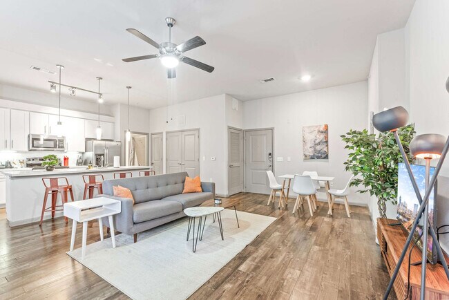 The advertised rate of $3,053/month is the lowest available price, based on a 1 month(s) stay with a move-in date of April 19, 2026. Rates vary depending on the duration of stay, season, and other parameters. For exact pricing and additional pricing components, please visit our website and enter your desired move-in and move-out dates. The rate is applicable when billed upfront; it can be higher if billed in multiple payments. Feel at home in this 1,290 sqft 2-bedroom apartment in Riverside, a fast-growing and trendy community next to Downtown Austin, located on the 1st floor. This home-inspired apartment offers a fully equipped kitchen with pots and pans, bakeware, dinnerware, silverware, cookware, blender, and toaster. Enjoy the comfort of king-size beds with 12” luxury memory foam mattresses, memory gel and gusseted pillows, down comforters, and ultra-soft linens. Fresh towels and bathroom essentials are provided, and en-suite laundry with a washer and dryer is available for your convenience. A queen-size plush air mattress, complimentary coffee and tea with a Keurig machine and traditional drip coffee are also included. Free on-site gated surface lot parking is available. Riverside, also known as East Riverside-Oltorf, is a fast-growing and increasingly trendy community right next to Downtown Austin. Guests can enjoy a scenic view of Lady Bird Lake and the city beyond while taking a walk along The Boardwalk. The neighborhood is home to many artists and musicians whose influences color the community in classic Austin fashion. Visit hotspots like Buzzmill coffee, The Bazaar or Emo’s, one of the most prominent nightclubs in Austin for chart-topping musicians and performers. It's 8 minutes to Downtown (Rainey Street), 14 minutes to Zilker Park (ACL), 6 minutes to Austin-Bergstrom Airport and 14 minutes to CotA Race Track. Smoking, parties, and excessive noise are not allowed, including on balconies and in shared spaces. Smoking violations are subject to a $1,000 fine, which includes the cost to clean, deodorize, and repair damages. Pets are not allowed, and violation of this policy may result in a $1,000 fine. Check-in is at 4 pm, and checkout is at 10 am. Guests who stay beyond their designated checkout time or delay our housekeeping staff are liable for any associated costs and expenses, up to $75 per hour after 10 am. Includes ultra-fast Wi-Fi with the latest in router technology and en-suite work stations. [SI]