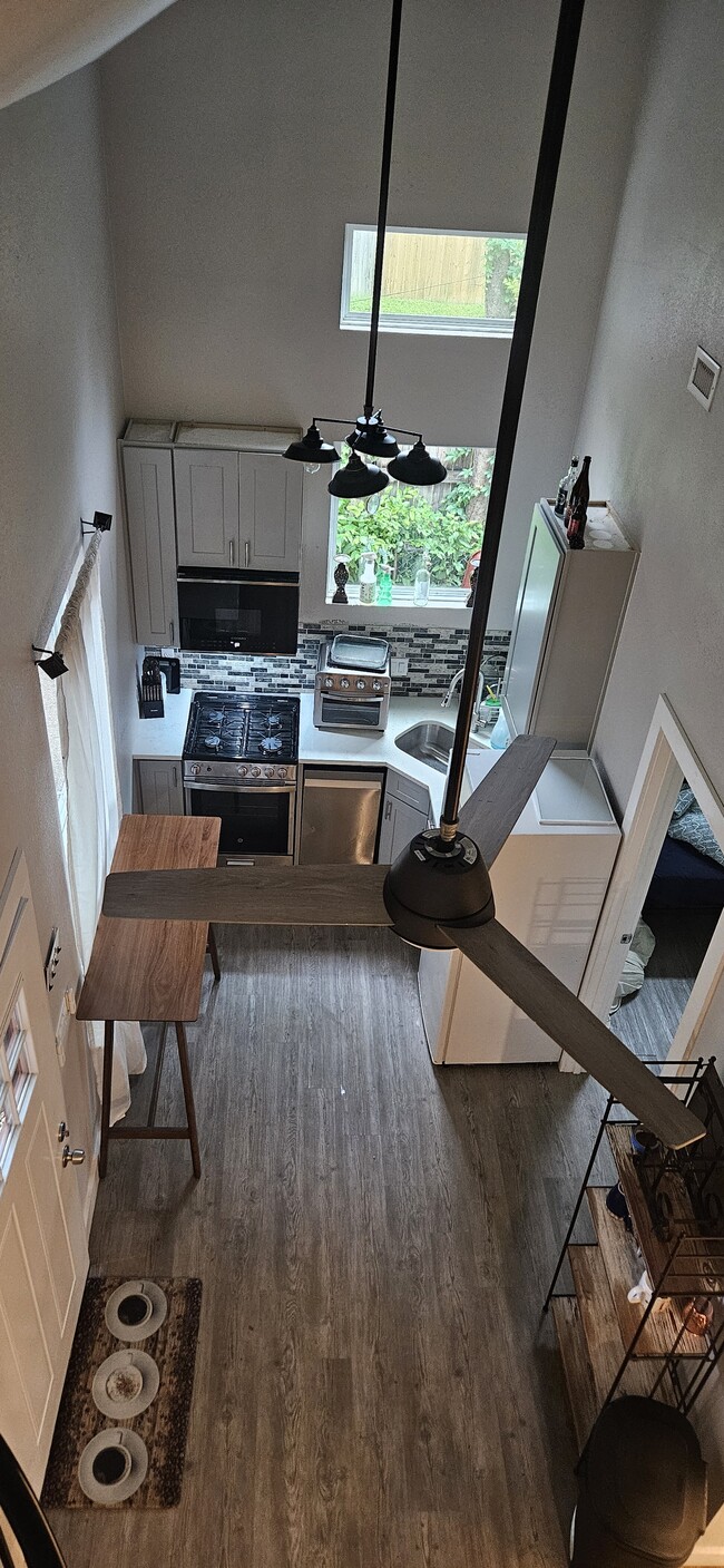 READY TO MOVE IN NOW FURNISHED OR UNFURNISHED-- 12-month or 6-month lease 2 Bedrooms + Loft (for office). Approximately 2 miles from UT Austin, Downtown, the Capitol, Dell Medical Center, & Muller Center. Lots of restaurants nearby. Metro Bus / Train to downtown a few blocks away. 12-month lease $2,199, but will consider 6 month for $2,299. Cute & Cozy 2 bedroom with an additional large loft on 2nd floor which would make a perfect office. The first floor has the living room, kitchen, bathroom (w/tub), and 2 bedrooms. Lots of windows for sunlight and trees all around give privacy. There is a separate private entrance and backyard with large oak tree and patio with table and chairs. There is a separate laundry room with washer and dryer that is shared with the front house. Parking is available in the driveway and on the street. Tenant pays for utilities (Austin Energy, Texas Gas, and Internet) which is in owners name and will bill back. All utilities total are $200-$250 per month. This house is a separate dwelling, behind the main house in the front. It has two bedrooms on the first floor and a loft, which could be a great office on the 2nd floor.