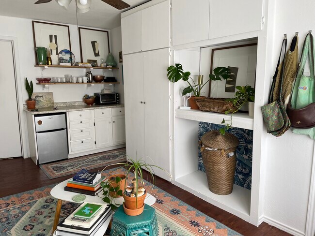 Renting our converted 1 car garage apartment and laundry room. $700 includes efficiency style room with kitchenette and bathroom, front load washer and dryer,and off street parking. The space is bright and cozy at 270 square feet. Looking for a one year lease or longer. Unfurnished: except for a small refrigerator and convection oven in the kitchenette (apartment does not have a stove or oven). The images show the way past renters have set up the space. A background check, credit report, and previous rental history will be required. $700 deposit will be needed to hold apartment. We are looking for a tenant that makes 3X rent monthly ($2,100) , has a credit score of 600+, and two years of good rental history. Available now Offering a one year lease, Tenant will pay portion of internet, gas, water, and electricity. Averages $100-$150 depending on the month.
