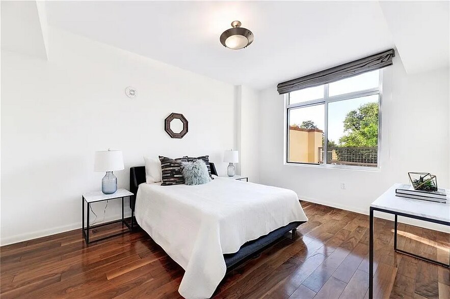 Modern Rainey Retreat | Direct Trail Access + Residents-Only Terrace Live at Milago in a beautifully updated 2-bedroom, 2-bath home in the heart of Rainey Street—where downtown convenience meets the outdoors. This 1,164 sq ft residence has an open layout, hardwood floors, and upgraded kitchen and bathrooms. The standout feature: a rare 3rd-floor setting with direct access to a residents-only community terrace and an open, unobstructed outlook—not facing another building or parking garage. Enjoy views over the dog park and quick access to the Lady Bird Lake Trail right outside the building. Home Highlights • Updated kitchen with quartz-style counters, breakfast bar, and stainless appliances • Bright living area with large windows and modern lighting • Two true bedrooms / flexible split layout for guests or a dedicated office • Both bathrooms upgraded with contemporary finishes • Reserved garage parking included • Pet friendly Milago Amenities • Rooftop pool + separate hot tub • 24/7 Concierge, business center, and enclosed lake-facing patio on the lobby level • Fitness center + resident club room • Secure mailroom + package receiving area Steps from Rainey’s restaurants and nightlife, and unmatched for outdoor access—Milago offers one of the most convenient connections to the Lady Bird Lake Trail.