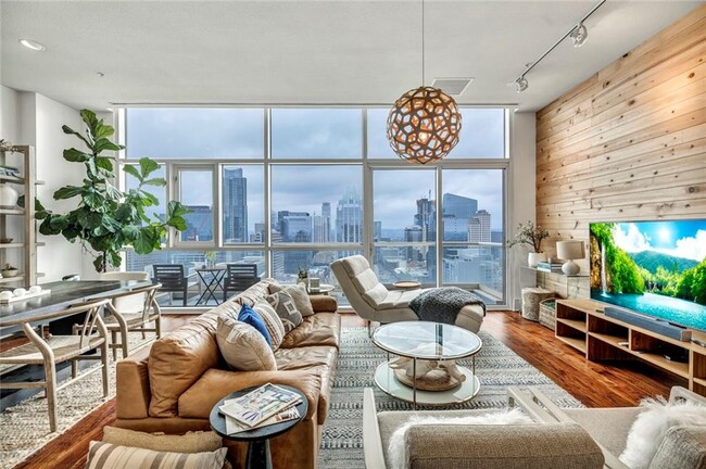 APPOINTMENT ONLY- DOWNTOWN - Live in luxury with one of the best and most unique VIEWS in the city- you can see all of downtown, town lake and the western hills. This gorgeous condo has been remodeled and is ready to enjoy. The unit has high ceilings, floor to ceiling windows with exceptional natural light, a gorgeous wood accent wall in the living room, custom California Closets, tons of storage, brand new floors, modern fixtures, front load washer & dryer, and is extremely spacious. There is a chef grade kitchen and 24 hour room service from the hotel if you don't cook. Tenants have access to all hotel amenities - room service, 2 restaurants in the lobby, Starbucks in the lobby, spa, shopping, gym, rooftop pool, hot tub - and not to mention a 10% discount on hotel services. Just a short walk to Rainey Street, 6th Street, Target, Whole Foods, the Convention Center, Eddie V's, and so many downtown restaurants and bars. Also, enjoy concierge dry cleaning pick up and delivery. There is a concierge 24 hours and onsite maintenance..... Condo Available on 4/15/22