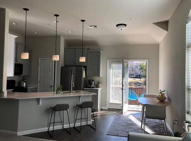 New build 2020 bungalow - end unit with yard. One level. 3 bedroom and two full bath. Washer dryer on site. One parking spot in garage with electric car charger available upon request. One additional parking spot in front of garage - some overflow available on a first come first serve basis. All utilities must be paid by tenants - approx $130 per month total minus internet. Part of an HOA therefore you do not need to mow nor water it is all taken care of.