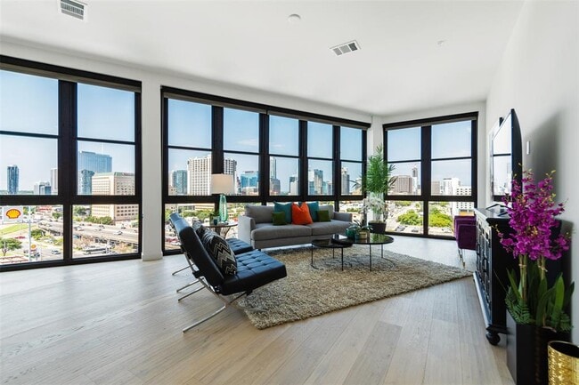 This furnished corner residence at The Tyndall offers what is widely regarded as the building’s premier skyline view, with expansive downtown Austin vistas framed by floor-to-ceiling glass on two sides. Natural light fills the home throughout the day, creating a bright and open living environment. The interior features a well-designed layout with an open living and dining area, a modern kitchen, two bedrooms, two bathrooms, and a dedicated study. Curated furnishings and refined finishes complement the architecture without competing with the views. Residents enjoy access to one of downtown Austin’s most amenity-rich buildings, including 24-hour concierge service, a resort-style pool, fitness center, resident lounges, conference rooms, and secure parking. Ideally located between downtown and East Austin, The Tyndall offers convenience, comfort, and elevated city living.