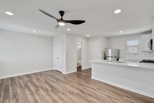 Move in ready! Cute, updated studio apartment! Enjoy a private entry up a set of stairs on the backside of the house where the garage faces the rear. Parking included! All utilities and internet included! Breakfast bar, ceiling fan/central A/C and a window unit to keep you extra cool in this heat. Refrigerator, washer and dryer. *No Pets. Owner occupies the main house and will be managing this. Enjoy all of Easton Park's community amenities such as hike and bike trails, pool and more!