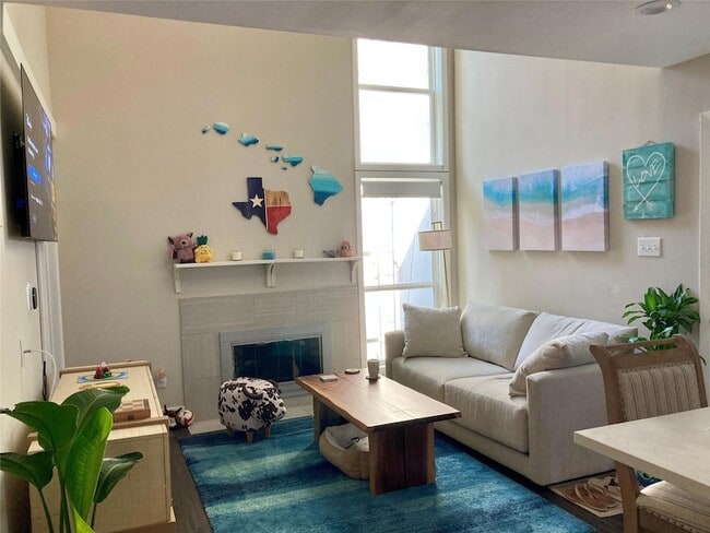 Experience modern living in this stunning, freshly painted condo at The Flats at 935 Condominiums in Austin. This move-in-ready condo features a spacious and versatile two-story layout, highlighted by a downstairs main bedroom with a private ensuite bathroom and a bright, airy living area with soaring ceilings. Upstairs is an additional bedroom and full bathroom. The rental is designed for total convenience, with high-speed Wi-Fi, cable, and a mounted flat-screen TV all included in the price, along with patio furniture for your private outdoor space and assigned parking spot #45. The sleek kitchen boasts stainless steel appliances and ample cabinetry, while the community offers premium amenities including a clubhouse, sparkling pool, and a fully equipped workout facility.