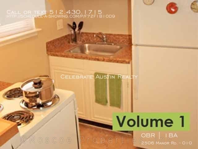 ---- SCHEDULE A SHOWING ONLINE AT: http://showmojo.com/lac/f72f1b10d9 ---- Welcome Home to Volume 1 (formerly Archway Apartments). Located on Manor Road, Volume 1 is minutes from Cherrywood's restaurants and coffee houses. The complex features large, remodeled efficiency apartments with wood laminate flooring, appliances, fixtures and hardware. An incredible location convenient to UT, downtown, restaurants, coffee shops and more.