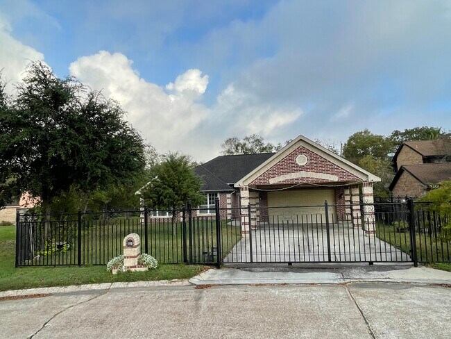 Beautiful one-story home with remote-controlled security gates in the Goose Creek School District, in a safe neighborhood, with a split floor plan, a two-car garage, and black with gold flake granite countertops, stainless steel appliances. The 65-inch Sony 4K UHD TV is already mounted in the chimney and is linked to security cameras. Lorex 4k UHD 8ch 2TB. Large backyard with a covered patio for early morning coffee, as well as an open atrium, Jacuzzi, gas stove, Gas furnace, wood log chimney, Electric and Gas dryer not included. HEB, Joe V's, ALDI, Kroger, La Michoacana, Foodtown, Walmart, Target, Ross, Burlington, Academy, Buc-ee's Texas Road House, Olive Garden, Airi Ramen, Methodist hospital, and other major stores are all within a mile. I-10, Spur 330, and 146 are all easily accessible.