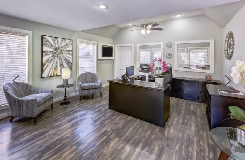 Monthly resident events, limited electronic access gates, 24-hour emergency maintenance, onsite courtesy officer, & free resident services (color printing, copy, scan, fax).Coffee bar, lighted tennis court, swimming pool, gazebos, vending machines, and walkways all completely fenced for privacy and quiet living. Smoke-free apartments that are tile, Ceiling fans, walk-in closets, and kitchens with all electric appliances and wood cabinetry. All apartments come with individual central AC units and some have outdoor balconies.Open and covered parking for all primary residents included at no additional cost.