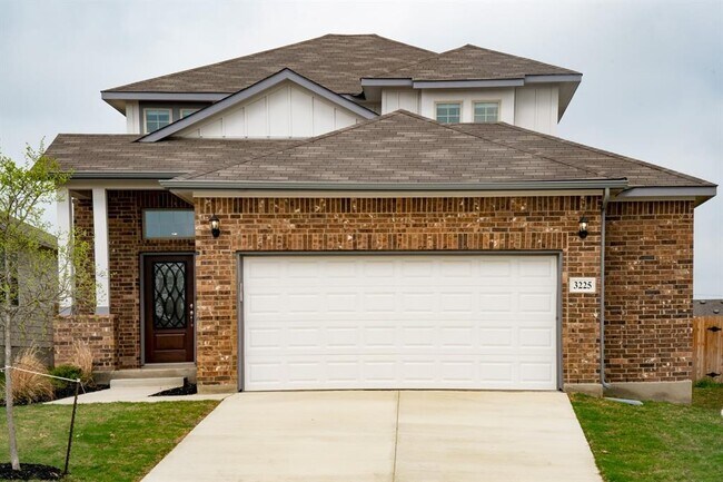 Wonderful masonry home built by Liberty Home Builders. Ready for immediate move-in! The property has a tenant through the end of the year. Available to move in 01/01/2026. Discover this beautiful well-designed two-story home offering a thoughtfully crafted open-concept floor plan with four bedrooms and two-and-a-half bathrooms, including a desirable primary suite on the main level. The kitchen showcases crisp white cabinetry, a subway tile backsplash, recessed and pendant lighting, and stylish luxury vinyl plank flooring throughout the downstairs living areas. The spacious primary bedroom features a charming bay window and ceiling fan, while the en-suite bath includes dual vanities and a sleek frameless walk-in shower. Upstairs, enjoy a generous game room and three additional bedrooms, providing flexible space for work, play, or guests. Step outside to a covered backyard patio—ideal for both relaxing and entertaining. Conveniently located in the Overlook at Creekside community near H-E-B, I-35, Creekside Shopping Center, and the drive-in movie theater. Schedule your showing today!