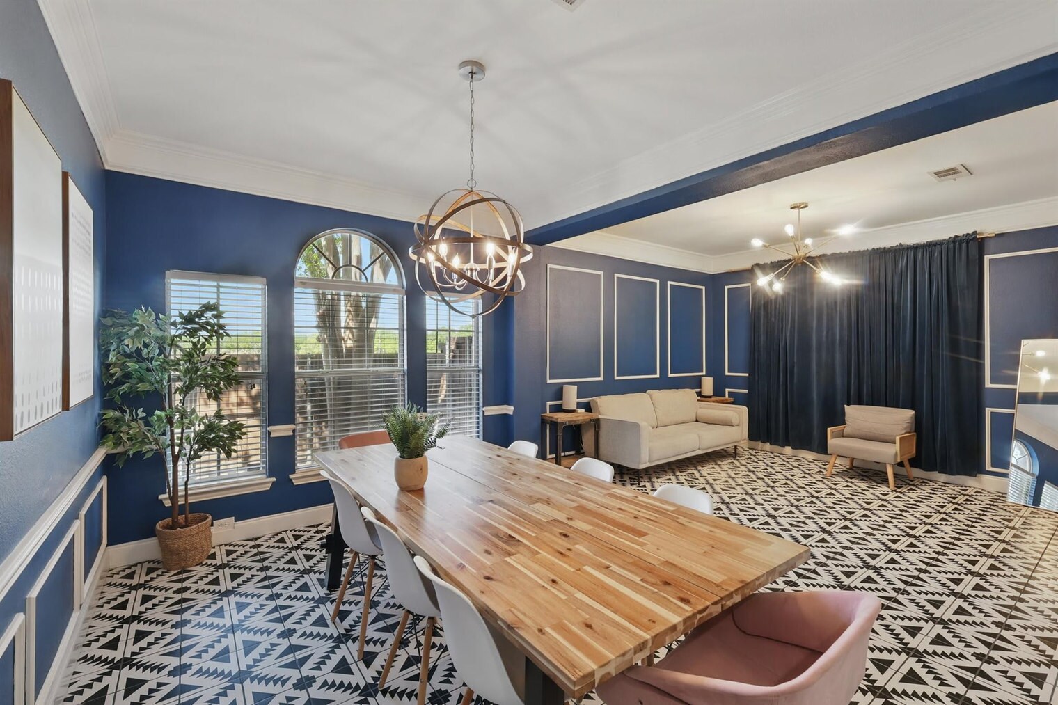 Feel at home in this spacious Carrolton vacation home, perfect for large groups with 4 bedrooms and 3 bathrooms. This southern mansion features a fully equipped chef’s kitchen with stainless steel appliances including an oven, fridge, freezer, stove, microwave, and dishwasher, as well as cooking essentials, place settings, and dining utensils. The kitchen boasts granite countertops and two islands. The living area offers hardwood floors, vaulted ceilings, comfortable couches, coffee tables, lighting, a designer rug, a flat-screen TV, and high-speed Wi-Fi. There is a dedicated formal dining room. Entertainment options include a cinema room and a playroom with a ping pong table. A laundry room with a washer and dryer is available for your use. House-trained pets are welcome with a non-refundable pet fee of $150 per pet (maximum of 2 pets per stay). Located in the heart of the Dallas-Fort Worth area, Carrollton is a vibrant community with parks and safe neighborhoods. Historic Downtown Carrollton, Indian Creek Golf Club, ICR Discovery Center for Science & Earth History, Mandalay Canal Walk at Las Colinas, and Sam Houston Trail Park are all nearby. Smoking of any type is not allowed, and violations are subject to a $450 fine plus the cost to clean, deodorize, and repair damages. Only registered guests are allowed on the property. The maximum number of cars allowed is 2 in the driveway. Room #4 will be opened for groups of 8+ guests. Registration Number: P-00006 [SI]