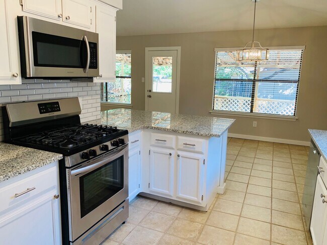 Tucked away from busy streets, this cozy home has the feel of privacy in highly desirable Anderson Mill West neighborhood with easy access to 183, 45 & 620. Just minutes from Lakeline Mall, neighborhood park, close to shopping and top rated schools. Beautifully renovated, bright and open floor plan w/vaulted ceilings in living room. Kitchen is gorgeous, all new granite counter tops, back splash with SS appliances and 2" blinds on all windows. All bedrooms with new flooring and all new fixtures. Covered back patio and large shed. No smoking allowed