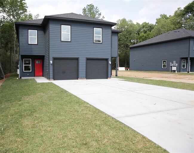 Brand new 3-bedroom, 2.5-bathroom duplex unit available for rent in the vibrant center of Conroe. Conveniently located near I-45, 105, and 336 for easy commuting. Upstairs features three bedrooms and two full bathrooms, along with washer/dryer connections for added convenience. Downstairs boasts a generously sized living room, half bathroom, and an expansive kitchen. Enjoy the modern touch of vinyl plank flooring and quartz countertops throughout, plus the bonus of a nice-sized yard for outdoor relaxation and activities. Attached one-car garage and a single driveway provide parking space for two additional vehicles. Extra parking available for recreational/work vehicle, ensuring ample space for all your needs. Move in special, Half month free after 30 days occupancy.