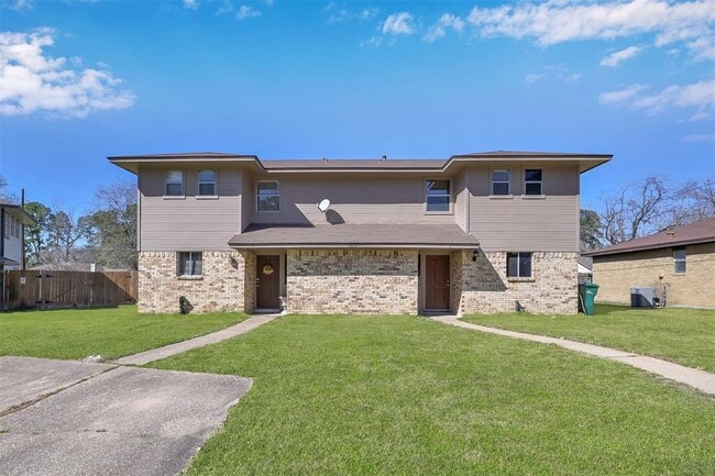 Cute duplex with all new interior paint and new carpet. located on cul-de-sac with Huge fenced back yard. Bedrooms are roomy with walk in closets, Ceiling fans. Large living/dining room area. Refrigerator included. Covered patio. Great location in residential neighborhood, easy access to Conroe, Woodlands, etc.