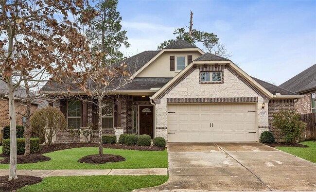Immaculate single story home in sought after gated community of Harper's Preserve. Open floor plan. Kitchen boasts large island, granite counter tops, GE stainless appliances, gas range, and breakfast bar. Gorgeous dark Hardwood floors throughout main living areas. Private dining room off entry could be used as study or flex room. Master bedroom overlooks very private backyard. 3 secondary bedrooms and a bathroom are part of their own mini wing of the home. 5' foot garage extension provides area for extra storage. Walk to the neighborhood pool or park. Conveniently located with easy access to I-45, Hardy toll road & Grand Parkway. Minutes from shopping, dining, schools, hospitals, The Woodlands mall and Waterway. Front yard maintenance is provided. Fridge, washer and dryer included. Pets on case by case basis.