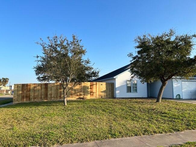 Application accepted, awaiting lease signing. County Square Foot records are Wrong (we are required to note them). This unit is approx. 1200 sf. Pretty unit in a Corner Duplex - Back area of Flour Bluff near the Laguna Madre & Bluff's Landing! Flour Bluff ISD (bus pick up on the corner)! Approximately 7 minutes to NAS - CC. All ceramic tile; central air & heat; all new ceiling fans in all living/bedroom areas; enormous kitchen loaded with cabinets - appliances include refrigerator, range, dishwasher & disposal; mini blinds throughout; separate laundry room with storage cabinet & washer/dryer hook ups. Dining room opens out into large side yard and Master has a private patio to the rear. Brand new fence with a large yard, with large oak tree in front. Freshly painted and waiting for a new family! Written application for each adult occupant $40 each. Monthly Gross Income requirement is 3 X's the monthly rent ($4,650). Call Today for your appointment to view!