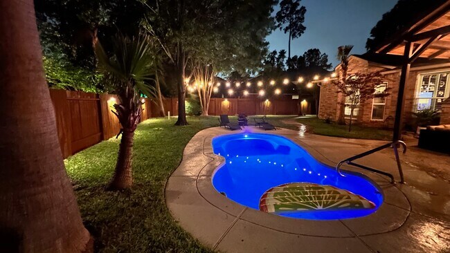 Home is currently occupied and will be professionally cleaned and move-in ready by May 4th. Step into luxury 4-bedroom,3.5-bath home offers a comfortable and modern layout. The kitchen features granite countertops,stainless steel appliances,soft-close cabinets,and a refrigerator is included. Acacia wood flooring runs through most of the main floor and into the upstairs game room,with matching wood-stained doors adding a nice touch throughout. The primary bathroom has been fully updated and includes a custom closet. Plantation shutters are installed on all windows. Enjoy your own private pool,and a spacious covered patio,perfect for relaxing or entertaining. This home offers a comfortable and modern layout and is located in a quiet cul-de-sac with highly rated schools. MLS ID 30807123