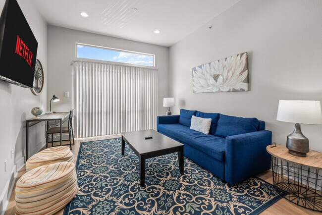 The advertised rate of $6,917/month is the lowest available price, based on a 30 day(s) stay with a move-in date of July 22, 2026. Rates vary depending on the duration of stay, season, and other parameters. For exact pricing and additional pricing components, please visit our website and enter your desired move-in and move-out dates. The rate is applicable when billed upfront; it can be higher if billed in multiple payments. Welcome to this 2-bedroom apartment in Deep Ellum, Dallas' Arts and Music Hub, where you'll feel at home. This modern, fully furnished apartment features a sleek urban design and is thoughtfully set-up to make guests feel comfortable and secure. This apartment features keyless entry, a fully equipped kitchen with a Keurig, complimentary coffee and tea, a refrigerator, freezer, stove, oven, and microwave. For your convenience, towels, linens, bed pillows, blankets, hangers, a hair dryer, an iron, an ironing board, and an in-unit washer and dryer are provided. Entertainment is provided via ROKU and a 4K HDTV in the living room and bedroom. Basic toiletries, including shampoo, conditioner, body wash, and toilet paper, are provided to get you started. Free parking for one vehicle is included. A pack-n-play and highchair are available in the unit. Pets are welcome on a case-by-case basis for a fee starting at $50 per night, with discounts for longer stays up to $175 per month per pet. Located in the central area of Deep Ellum, this apartment is close to Baylor University Medical Center (0.6 miles), the Medical District (4.5 miles), the Cotton Bowl Stadium (1.2 miles), and the American Airlines Center (2.8 miles). The Malcolm X at Junius bus stop is a 3-minute walk away, and the Baylor Station DART train stop is located next to the building. Dallas/Fort Worth International Airport is a short 25-minute drive away (20.9 miles). This apartment is in a lively urban environment, so some noise, especially overnight, should be expected. The DART train station is directly next to the building, which can cause overnight train noise, including occasional horns and vibrations. No smoking or open flames are allowed, and violations will result in a $1,000 charge, possible cleaning fees, and a $500 ozone treatment. Quiet hours are after 10:00 PM. An extra fee of $50 per person or pet, per night, will be charged for any not declared on your reservation. Late check-out will result in a charge of $75 for every 30 minutes beyond the 10:00 AM check-out time. Additional cleaning services are available at $100 per hour. A $1,000 charge, possible cleaning fees, and a $500 ozone treatment will be charged for any kind of smoking. Includes a dedicated workspace and a business center. Enjoy access to the sparkling pool and comfortable common areas. The state-of-the-art fitness center is equipped with cardio machines, weight training equipment, treadmills, and ellipticals. The business center features computers and printers. [SI]