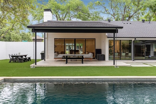 This fully furnished, luxury lease property is perfect for a tenant dealing with an insurance settlement, doing a remodel or someone who wants to be near the most desirable neighborhoods in Dallas while searching for their dream home. Located in the heart of Dallas and adjacent to Highland Park with quick access to Love Field, DFW Airport and Downtown Dallas, this home was meticulously remodeled circa 2023 with exquisite designer finishes. Set on a private 0.44-acre corner lot, this 5-bedroom, mostly single-level home has breathtaking views of the landscaped, turfed yard and handsome pool-spa from nearly every space in the home. The only upstairs space is the guest quarters above the garage, featuring a kitchenette and full bath. Step inside to discover a modern gourmet kitchen, complete with dual islands and a wall of windows that seamlessly connects with an entertainer's backyard. High-end stainless-steel appliances, including a built-in oven, microwave, beverage cooler, and convection cooktop, elevate the culinary experience. The secluded primary retreat offers soaring vaulted ceilings, ample storage with a custom wall unit, and a spa-like ensuite bath. Relax in the curb-less double shower, soak in the luxurious tub, or enjoy the spacious walk-in closet. One additional guest bedroom includes an ensuite bath and a built-in desk, while another bedroom makes for a perfect work-from-home office, with scenic views and direct backyard access. Entertain effortlessly in the formal living room, which includes a wet bar, stunning fireplace, and opens to a covered patio. The expansive family room, adjacent to the kitchen, features its own fireplace and sliding doors leading to an open patio. Ready for immediate move-in, this updated, fully furnished home provides an unparalleled lease opportunity, offering the best of Dallas living with chic style and comfort. No short-term rentals, but landlord will consider lease terms less than 12 months and pets on a case-by-case basis.