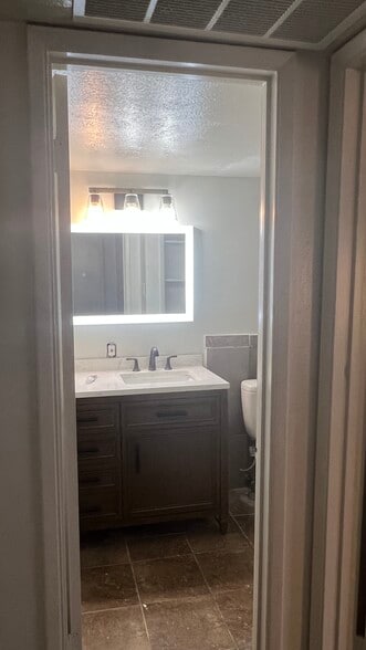 1 bedroom 1 bath condo recently updated with new vanity, tile, mirror, SS appliances, updated floors. Unit includes water/trash. Ready for move-in