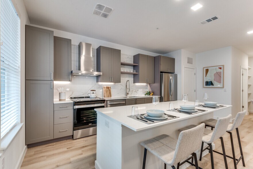 Welcome to Hazel by the Galleria, where sophisticated design, upscale amenities and a premier North Dallas location combine to create your next home. Choose from thoughtfully designed studios, one-bedrooms and two-bedrooms featuring gourmet kitchens with quartz countertops, stainless steel appliances, movable islands, luxury vinyl plank flooring, frameless glass showers and smart home technology. Tall ceilings (9-14 feet), walk-in closets and, in select homes, private yards round out the offerings.