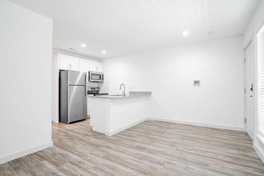 Situated off of Marsalis Ave, Two Fountains at Bishop Ridge is a two-part, newly renovated community in North Oak Cliff. These gorgeous historic buildings have been refurbished and revitalized to their former glory. Discover our spacious floor plans, designed with you in mind. Choose from a one-bedroom or two-bedroom floor plan with spacious closets, modern fixtures, and wood-style flooring. Our kitchens feature stainless steel appliances and gray quartz countertops that provide the perfect space to entertain family and friends.