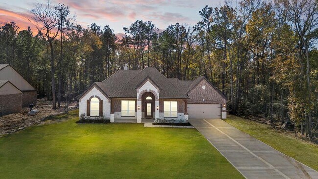 Welcome home to this beautiful ranch style 4 bed, 2 1/2 bath property situated on a spacious almost 3/4 acre lot! Features an abundance of natural light, high ceilings, and formal entry. Open concept layout with privacy to the primary en-suite, covered patio with TV and speakers making ideal for entertaining, and a huge backyard with no rear or rt side neighbors! Kitchen features 42 in cabinets, stainless appliances, granite countertops, plenty of pantry space, and flows into the living area complete with surround sound accented by a gorgeous floor-to-ceiling stone fireplace. All appliances included, refrigerator, washer & dryer! Property is nestled in community of Encino Estates offering the best of both worlds. Country feel where you can listen to the crickets sing from your front porch." Far enough from the city, but close enough to commute with an on-site guard. Great location mins away local shopping/dinning, easy commute on highways, & 45 miles to Downtown Houston!"