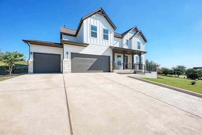 Set on over an acre backing to a tranquil greenbelt, this refined Ashton Woods residence in the coveted Cortaro community offers an exceptional blend of space, privacy, and elevated design—all within the acclaimed Dripping Springs ISD and just minutes to schools, HEB, and local favorites. Thoughtfully crafted across two levels, the home features 4 bedrooms, a dedicated study, formal dining, 3.5 baths, a media lounge, and an expansive upstairs game room. Soaring vaulted ceilings with exposed beams crown the luminous great room, where expansive sliders open to a covered outdoor living space. Oversized transom windows invite serene natural light throughout, creating a seamless connection to the surrounding landscape. The chef’s kitchen is equally impressive—anchored by a substantial center island, framed in custom shaker cabinetry, and appointed with premium granite surfaces, stainless appliances, a butler's pantry with cafe counter, and a charming breakfast nook with built-in seating. The main-level primary suite is a peaceful retreat overlooking the backyard and greenbelt beyond. It offers a custom walk-in closet and spa-like bath with separate vanities, a freestanding soaking tub, and a glass-enclosed shower. Upstairs, three secondary bedrooms include a Jack-and-Jill layout, while the media room—with integrated sound and theater seating—offers flexibility as a fifth bedroom. Outdoor living is equally impressive with both front and rear covered patios—ideal for enjoying Hill Country sunsets or game day gatherings. The spacious three-car garage offers ample room for storage or a workshop. A rare lease opportunity where design, comfort, and setting align—schedule your private tour today.