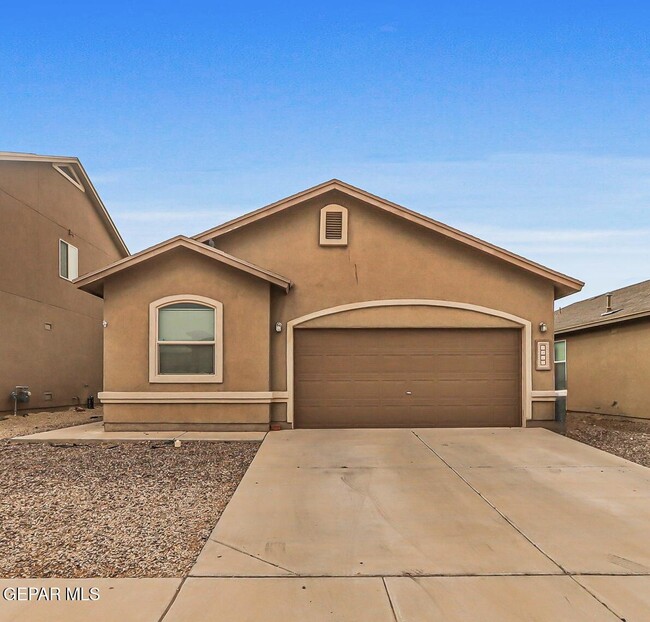 Come and make this house your home! This beautiful single-story residence features 3 bedrooms and 2 bathrooms. It offers spacious living and dining areas,along with a well-sized kitchen that includes a breakfast bar. Appliances such as a stove,refrigerator,dishwasher,and microhood are included. The generous primary bedroom has a wall-to-wall closet,and the primary bathroom features a shower/tub combination. The laundry room is conveniently located in the main hallway and it offers hookups for a washer and dryer. This home also includes a 2-car garage with opener and refrigerated air for your comfort. The easy-care landscaping is present in both the front and back yards. The spacious backyard boasts an extended cement area and planters,making it perfect for outdoor family gatherings. Conveniently located near schools,parks,and shopping,this home is less than 30 minutes away from Ft. Bliss with a quick access to Loop 375. Available now!
