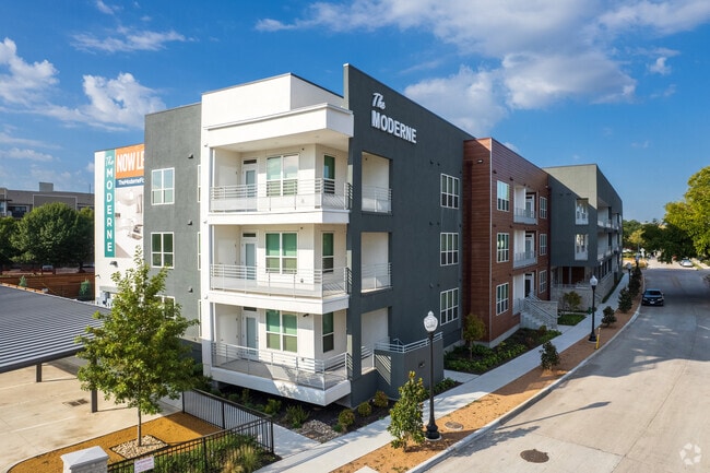 The Moderne, ideally located in the cultural epicenter of Fort Worth, TX, just steps from Montgomery Plaza and West 7th, unveils the quintessential portrait of what living is all about. Featuring just 43 residences comprised of stunning one and two bedroom layouts, with a unique fusion of relaxed sophistication wrapped in big city style, you will find the home you want to kick off your boots in and call your own. Reinvent your daily routine at The Moderne with luxe, rentable living surrounded by an unbeatable sense of community. Authentically Fort Worth and built with intention, enjoy both the vibrant city as well as the elegant comfort of home with modern living spaces and amenities that highlight enjoyment, relaxation & socialization. Featuring open-concept floorplans with designer finishes from top to bottom, you won’t be able to choose a favorite room. Spoil yourself with a chef’s island kitchen, outfitted in energy efficient stainless-steel appliances, a gas cook-top with vent hood, wine fridge, tile backsplash and quartz counters. Contemporary lighting and plumbing fixtures carry over into bathrooms, with double vanity sinks, framed mirrors, dedicated linen storage and oversized glass showers and separate tubs. Each residence is elevated with high tech wiring for connected living, including USB charging stations, doorbell, built-in speakers and custom roller shade window treatments. Home doesn’t stop indoors at The Moderne. Each home offers a large, private patio with exterior storage closet. Call us today to set a personalized appointment to tour your next home at The Moderne.