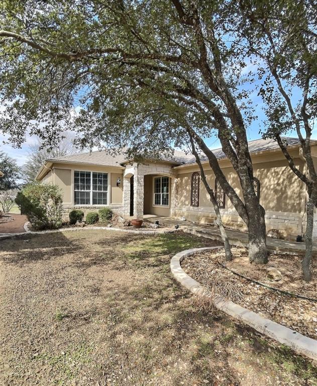 Gorgeous open and bright one story home in Sun City with a greenbelt like area off the large stone covered patio for added privacy. This home features two bedrooms, two full baths, an office with glass privacy doors, and two car garage. The kitchen has granite counters, plenty of cabinets, a center island and breakfast bar, and a dining room spacious enough for small or large gatherings. The home comes with stainless refrigerator, washer and dryer, and a sink in the utility room. The large living area features a tray ceiling with crown molding and two sets of full-view glass doors overlooking the extended stone patio with privacy wall. Located at the rear of the home, recently installed carpet in the primary bedroom has a tray ceiling and windows with wonderful views. The primary bath has dual vanities, medicine cabinet, soaking tub, and large shower. The secondary bedroom and bath are on the other side of home for added privacy. Close to golfing, swimming, and many activities of Cowan Creek Amenity Center. Listing posted by Texas Properties [REALLYO ID 4094066 11232024]