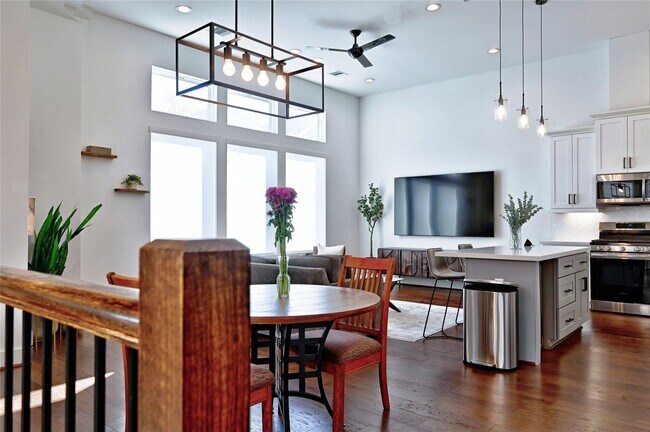 Better than new.Updated and hardly lived in. Fabulous,one-of-a-kind home in a private enclave of only 12 residences! This exclusive property offers a gated entry and a rare layout with two bedrooms on the first floor. Designed with a modern,chic,and minimalist style,it features a wrought-iron staircase,gleaming wood floors,soaring 12-ft ceilings,recessed lighting throughout,motorized blinds and a sleek contemporary kitchen with quartz counters,stylish pendant lights,white 42" cabinets with hardware,and a designer chandelier over the dining area.The spacious upstairs primary retreat boasts a beautifully remodeled bath with dual vanities,modern fixtures,upgraded tile,and a large walk-in closet—perfect for housing your designer wardrobe.Located just minutes from Whole Foods,trendy coffee shops,bakeries,the Heights,Galleria,and with easy freeway access,this home combines luxury,convenience& style. A must-see!Priced to sell. Appliances stay.Available December 1st 2025. MLS# 88776237