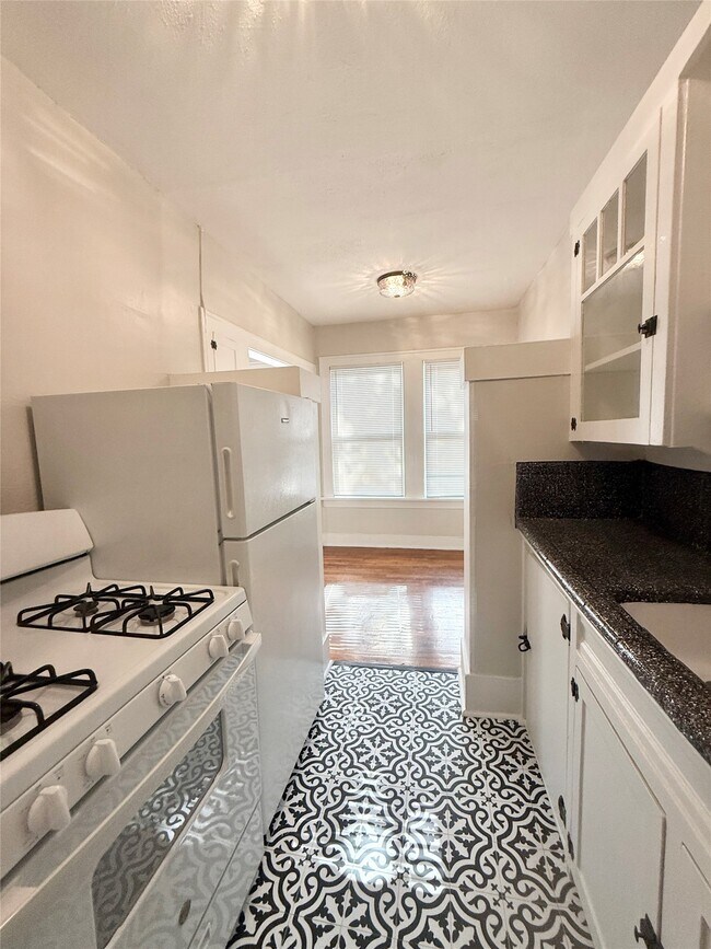 Charming downstairs corner 2/1 in vintage 1930's Complex,high ceilings,lots of windows,oak hardwoods,recent paint,updated fixtures and hardware,cute original built-ins,lots of charm !gated off-street parking available for 1 car (1st come / 1st serve),on-site laundry,easy access to the Medical Center and area Universities!! MLS ID 499225