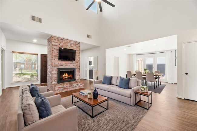 Discover modern elegance in this stunningly updated traditional one-story residence in a premier Energy Corridor community. Smart home features abound with a digital thermostat,smart locks,and a smart garage opener. This three-bedroom home also features a sprawling layout anchored by a central floor-to-ceiling gas log brick fireplace. The interior has fresh paint,updated lighting,and a mix of laminate and tile flooring. The gourmet kitchen is equipped with granite countertops,a breakfast bar,and Energy Star appliances. Retreat to the primary suite featuring a bold accent wall and a spa-like ensuite with double sinks,a jetted tub,and a separate shower. Exceptional technical upgrades include a new Carrier HVAC (2026),added insulation,a solar attic fan,solar screens,and a new washer. Outside,the brick exterior backs to a peaceful green space. Enjoy community pool,tennis courts and clubhouse access. Call us to schedule your private tour today! MLS# 40085465