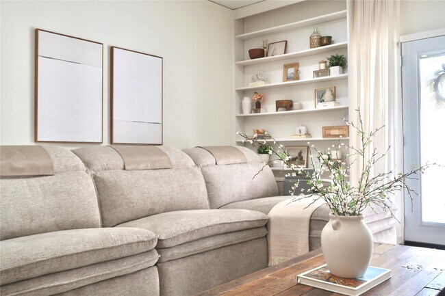 FULLY FURNISHED + ALL BILLS PAID!! Stunning townhome/condo with two master suites (rooms are the same size w/ large closets)! This beautiful home is located in a peaceful & quiet community,just minutes from City Centre (I-10 West & Beltway 8). The kitchen features ceramic tile,granite countertops,and a coffee bar. Enjoy a spacious living room with built-ins + large selection of books. French doors open to a back patio with a sail for cover from the Houston sun. This charming 2-bedroom,2.5-bathroom residence spans 1,224 sqft and offers central electric cooling + ceiling fans. You'll have two parking spots under the detached carport connected to the townhome,and a big window upstairs overlooking the beautiful courtyard. Located less than 3 minutes from a great Thai restaurant,Raising Cane's,Sonic,Freddy's & Chick-fil-A. MLS# 6812897