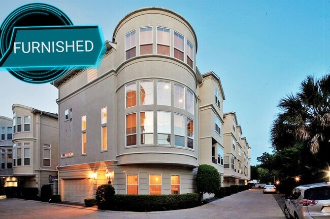 Fully Furnished , Elegant, Very unique Loft and classy Town House. Updated Elegant Corner T/H In Pristine Condition and Ready For Move-In! Prestigious Gated Community located in the heart Houston area of Montrose, just blocks from world-class restaurants and entertainment! Rare corner unit that beautifully accentuates a curved front elevation of windows with gated security, park-like esplanade entrance for low traffic and open green space. Relax and enjoy 3 bedrooms suites, 3.5 baths, patio, and LOFT Game room. Gourmet Kitchen amenities offers Granite, Island, S/S Appliances w/fridge and patio that could fit a grill. The master en-suite has a spacious wet area spa and walk-in closet. Interior Features Incl: Beautiful Hardwoods, Soaring Windows, High Ceilings, and Built-Ins. Recent improvements are New Vented Gas Stove Top, Fresh Paint thru-out.