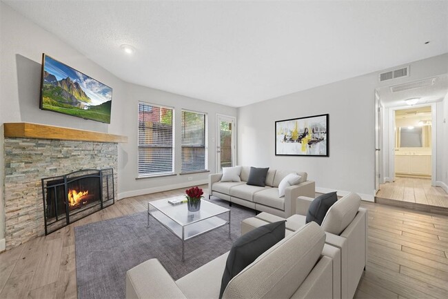 Beautifully upgraded condo in The Oaks of Kirkwood complex. Inside you will find an upscale modern look with neutral colors,wood-like flooring,ceiling fans,a large open living area with fireplace,2 bedrooms,full bath with separate sinks. The kitchen is open and bright with laminate countertops. Enjoy the modest backyard with a fenced patio and plenty of shade. Close to numerous parks and within proximity to Beltway 8,Westpark Tollway,I-10 and Hwy 6. PROPERTY DID NOT FLOOD. Some virtually staged photos show beautiful decorating possibilities. MLS# 79468784