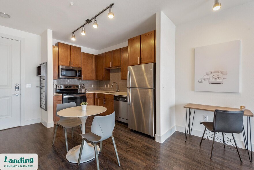 Landing offers flexible lease terms from weeks to months. Please always visit our website or contact us for the latest pricing & availability. Stay longer, save more: 6-Month Minimum base rent: starts at $2235/mo 12-Month Minimum base rent: starts at $2158/mo Landing offers flexible leases across a network of over 35,000 fully-furnished apartments throughout 375+ cities so you can rent on your terms, practically anywhere, and avoid the hassle of paying deposits or application fees. Visit to learn about all the benefits of a Landing membership, see our competitive up-to-date pricing, explore available apartments, take virtual tours, and make reservations online without jumping through traditional rental hoops. Landing's apartments at Tempo at White Oak are designed for comfortable, easy living, with the ability to stay as long as you like. Experience living with Landing Every apartment is outfitted with all the modern essentials including: custom-designed furnishings, a fully-equipped kitchen with deluxe stainless steel appliances, a gourmet coffee maker, premium linens, Smart TVs, and incredibly fast, reliable internet for working from home. When you live with Landing, you'll enjoy a hassle-free experience with the added benefit of 24/7 access to our dedicated member experience team. Some of the nitty-gritty: a background check and proof of income are required; we're completely smoke-free; bundled utility packages and pricing vary based on length of stay; pet-friendly options available; listed price reflects a 12-month minimum stay.