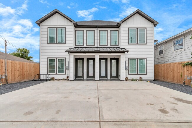 Come immerse yourself in this beautiful newly constructed duplex seeking to simplify the new era of family and student housing. This new construction on Rosalie Street, Houston Texas showcases a sleek modern design with luxurious features throughout. Step inside to find luxury vinyl floors, a stunning quartz countertop island, and top-of-the-line brand new stainless steel appliances. This BRAND NEW unit is Move-In Ready and located WALKING DISTANCE TO THE UNIVERSITY OF HOUSTON w/ 3 bedrooms and 3 FULL BATHROOMS. Enter to find a modern and fully furnished unit that includes an amazing open floor plan, luxury vinyl plank floors throughout, and designer finishes. The neutral paint and oversized windows combined with the abundance of natural light make the interior features of the house look spectacular. Entertainment-ready, the gourmet kitchen has stainless steel appliances, quartz countertops, stylish cabinetry, a tile backsplash, a center island w/seating, a pantry, and a gas range. The spacious owner's suite has BIG WINDOWS, a walk-in closet, and an ensuite owner's bathroom with a frameless glass shower and upgraded double vanity. Whether you are a student hoping to find a comfortable place to stay, with your friends or a Young professional starting a new chapter in your life, this is the perfect place for you. Fully furnished living room and bedrooms, with utilities included, Washer and Dryer available, spacious driveway and street parking available, conveniently located with quick access to the University of Houston and Texas Southern University, as well as downtown attractions all within a walking distance. Don't miss your chance to lease this incredible property. 3613 Rosalie Street offers 2 units of 3 bedrooms, 3 bathrooms, and 1778 square feet of living space. Built in 2023, this rental is a true gem.