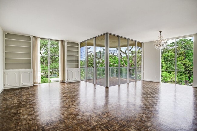 1 bedroom/1 bath unit at Inwood Manor available for lease. Rent includes all utilities - electric, water and maintenance. The living area includes built-in bookcases, floor-to-ceiling windows, parquet hardwood flooring, and adjacent dining area with chandelier. The kitchen features stainless refrigerator, granite slab counters, new cooktop (2020), and breakfast niche with wet bar. The bedroom also has parquet flooring and the bath has been updated (2020) with marble finishes. The spacious balcony, with saltillo tile flooring, offers northern and eastern views overlooking River Oaks and is large enough to entertain. The building includes concierge, event room, heated pool, fitness center, guest suites and park-like grounds. Rental Terms: Annual: $2,950 Per Month