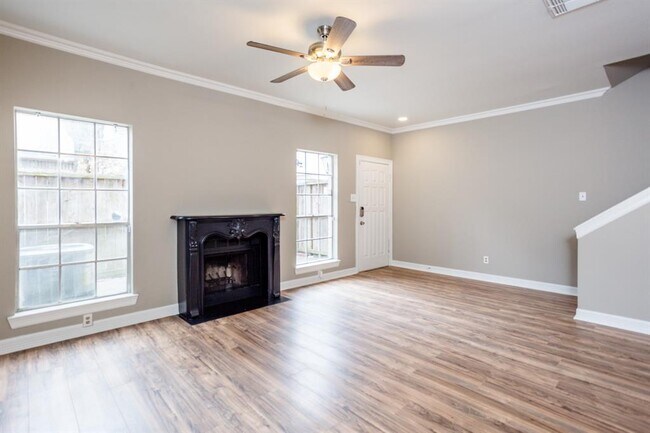 Stunning 2 bed/2.5 bath townhome in the desirable community of Tanglewilde, ideally located minutes from Downtown, Galleria, Texas Medical Center, and more! This home features luxury laminate flooring throughout, granite kitchen and bathroom countertops, marble bathtub surrounds, a charming wood-burning fireplace, and modern fixtures/finishes. This home also comes with an attached 2-car garage, a private patio area, stainless steel appliances and a full-sized washer and dryer! Community is well-maintained with serene outdoor scenery and a community pool.